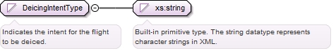 <simpleType name="DeicingIntentType"><annotation><documentation>Indicates the intent for the flight to be deiced.</documentation></annotation><restriction base="xs:string"><enumeration value="DEICE"><annotation><documentation>.Deicing Intent: Indicates the intent for the flight to be deiced.</documentation></annotation></enumeration><enumeration value="NO_DEICE"><annotation><documentation>.Deicing Intent: Indicates the intent for the flight to be deiced.</documentation></annotation></enumeration></restriction></simpleType>